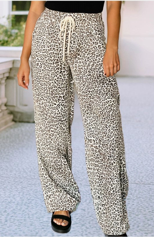 Leopard Frayed Edge Wide Leg High Waist Jeans
